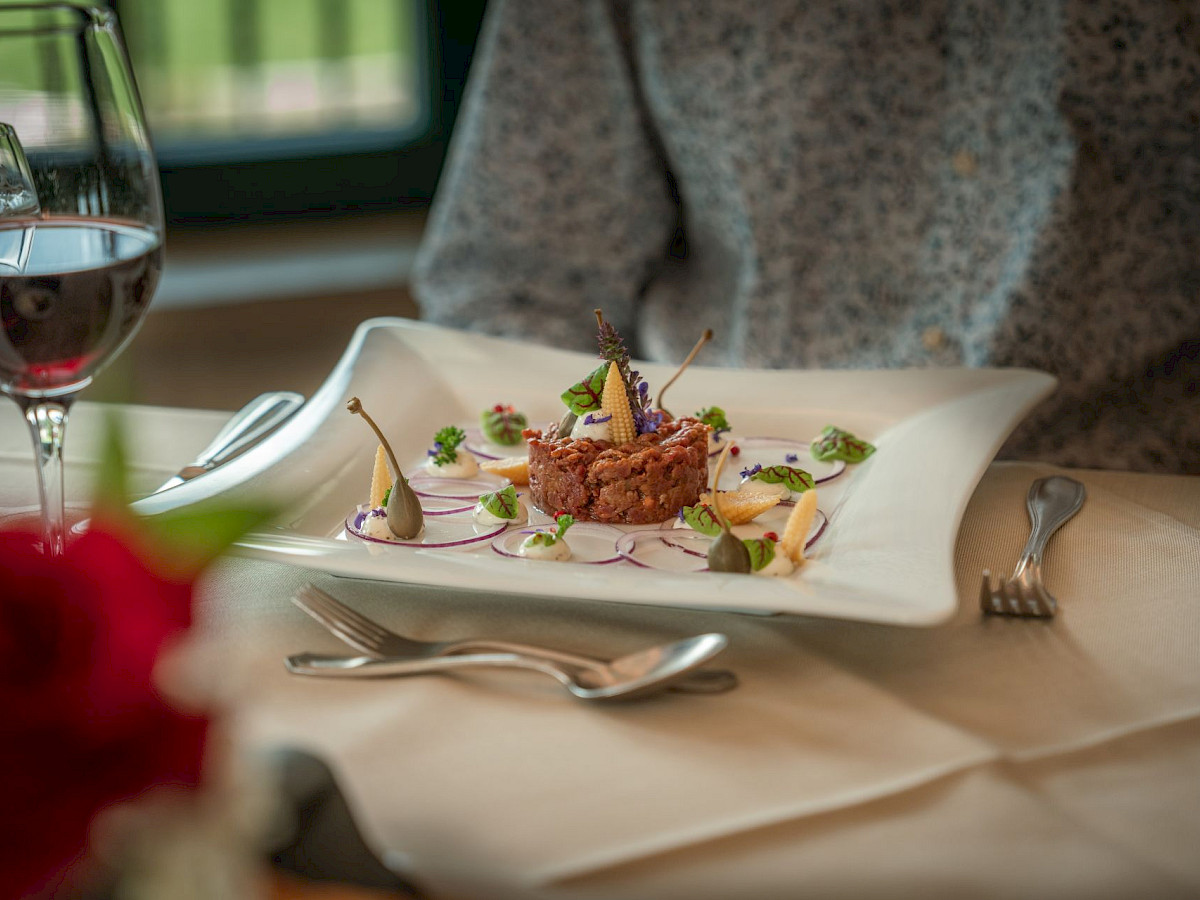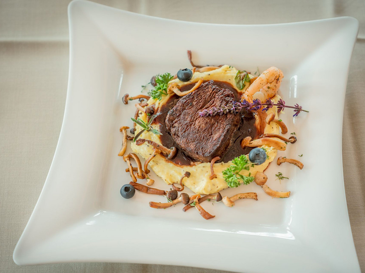 Wir bieten Ihnen zur jeweiligen Saison passende Spezialitäten, die wir traditionell zubereiten und zeitgemäß interpretieren. Auch Wild aus dem hauseigenen Jagdrevier und Tiroler Schmankerl finden Sie das ganze Jahr über auf unserer Speisekarte.