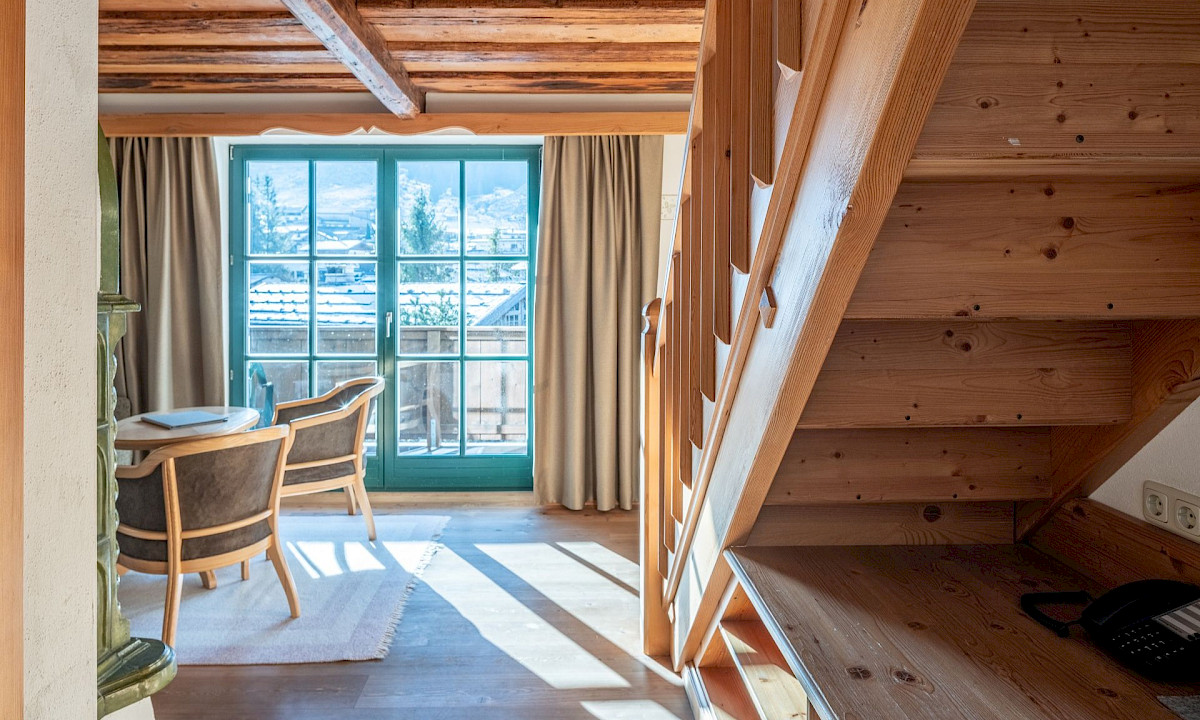 Die Kaisersuite Junior mit 60 m² und eigener Terrasse sowie Kachelofen für wahrlich kaiserlichen Genuss.