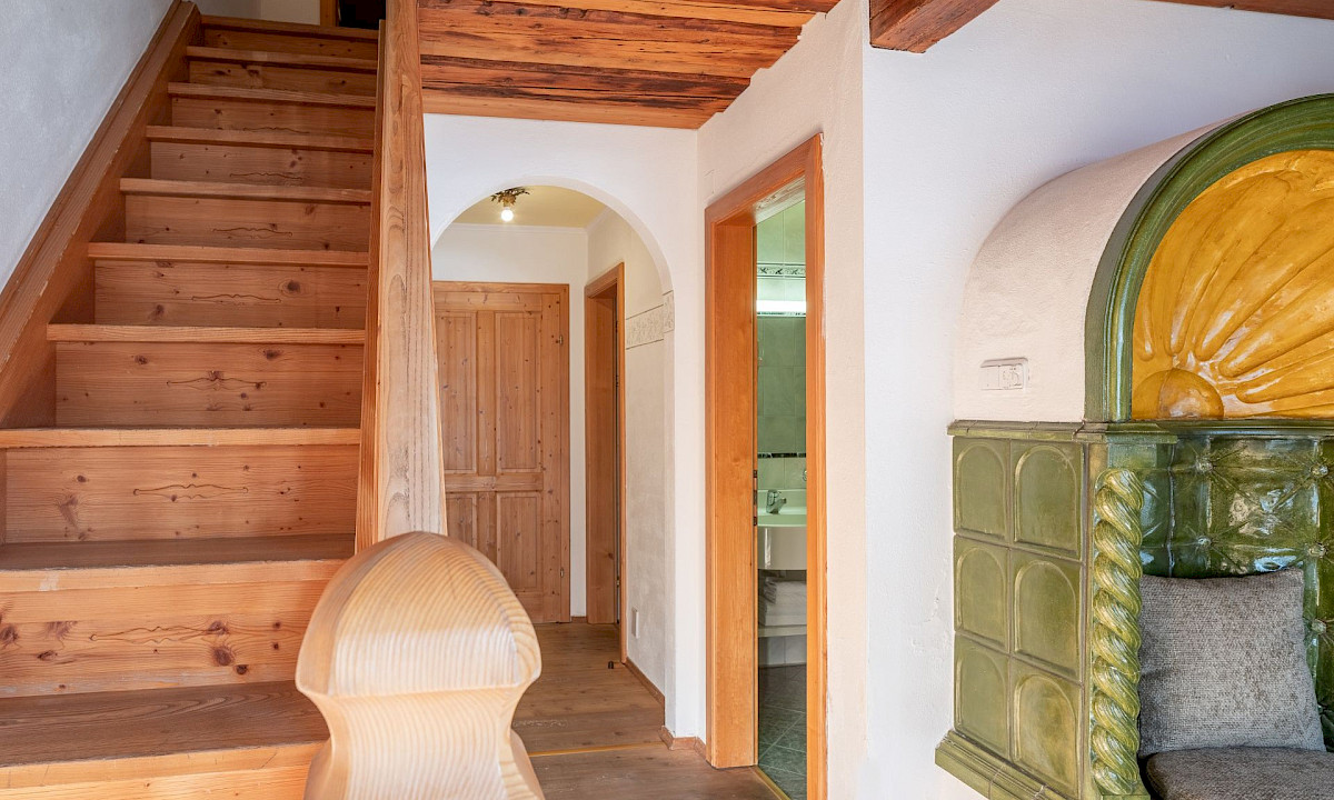Verweilen Sie kaiserlich auf dem Südbalkon mit Bergblick und genießen Sie die Zeit am Kachelofen im Wohnraum.