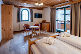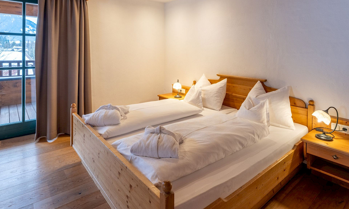 Doppelzimmer Kaiserpanorama mit 40 m² und Südbalkon für einen freien Blick auf den Wilden Kaiser.